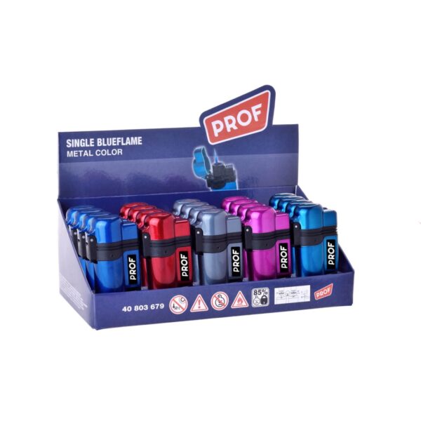 Αναπτήρας αντιανεμικός Prof σε διάφορα χρώματα. Χαρακτηριστικά: – Αντιανεμικός – Διαστάσεις:   7.6 x 3.6 x 2.2cm