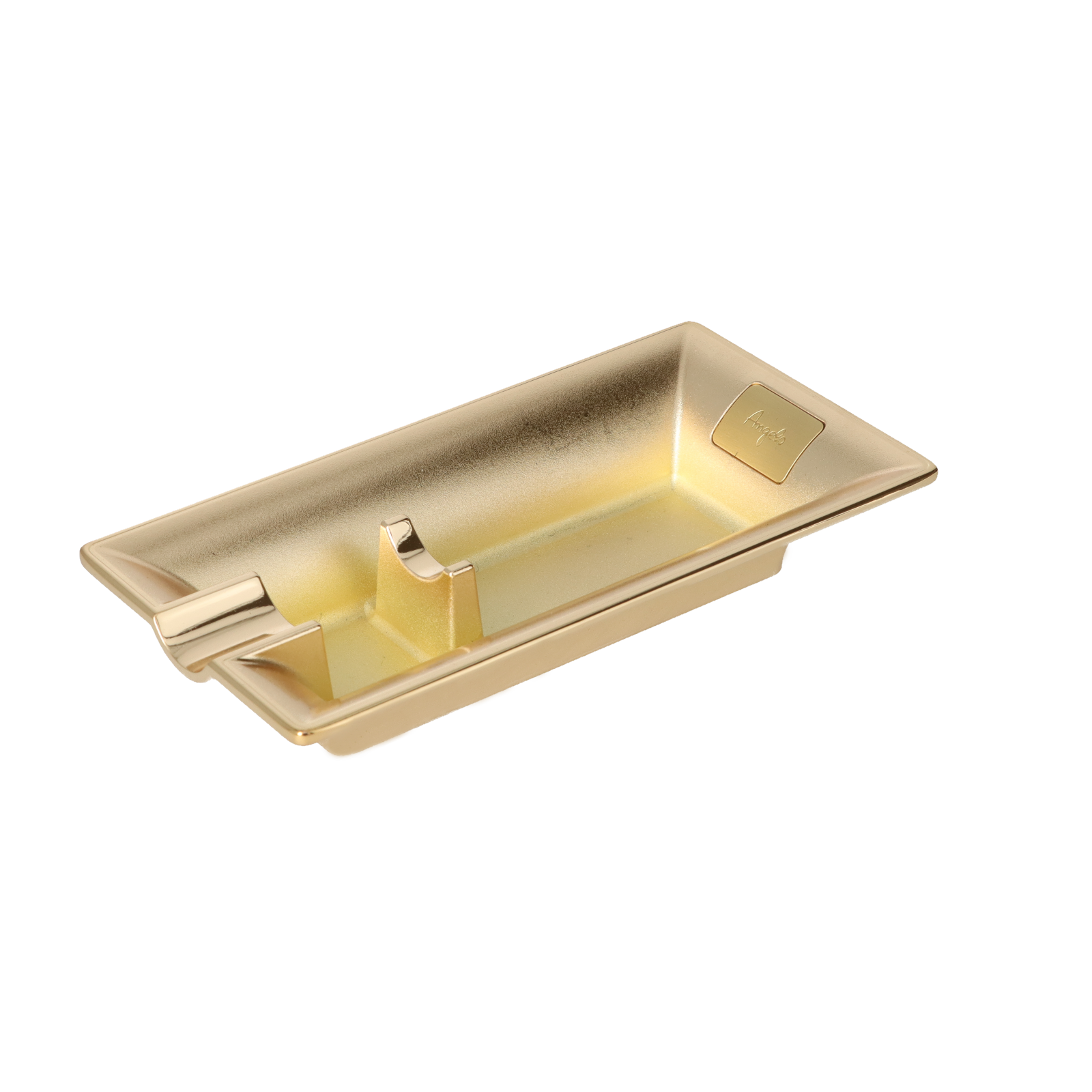 Μεταλλικό τασάκι για ένα πούρο σε χρυσό χρώμα και ενσωματωμένη βάση που επιτρέπει την εύκολη και σταθερή τοποθέτηση του πούρου.