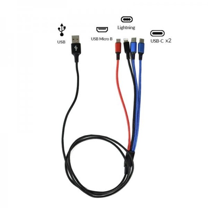 Cable USB 4 in 1 Type C/Micro USB/Lighting 125cm 2.8A