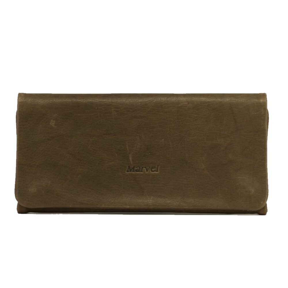 Καπνοσακούλα στριφτού Marvel δερμάτινη σε χρώμα καφέ.