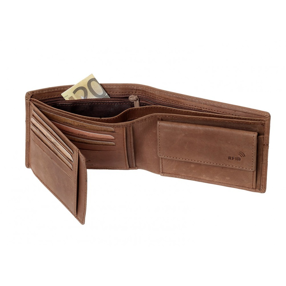 Ανδρικό πορτοφόλι της Lavor κατασκευασμένο από δέρμα σε καφέ χρώμα.