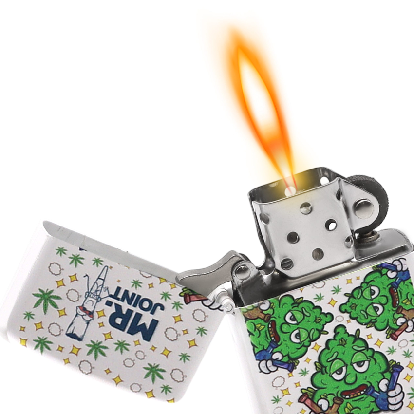 Μεταλλικός αναπτήρας Mr. Joint τύπου Zippo, με σύστημα πέτρας και φυτιλιού, προσφέρει σταθερή φλόγα σε διάφορα σχέδια.