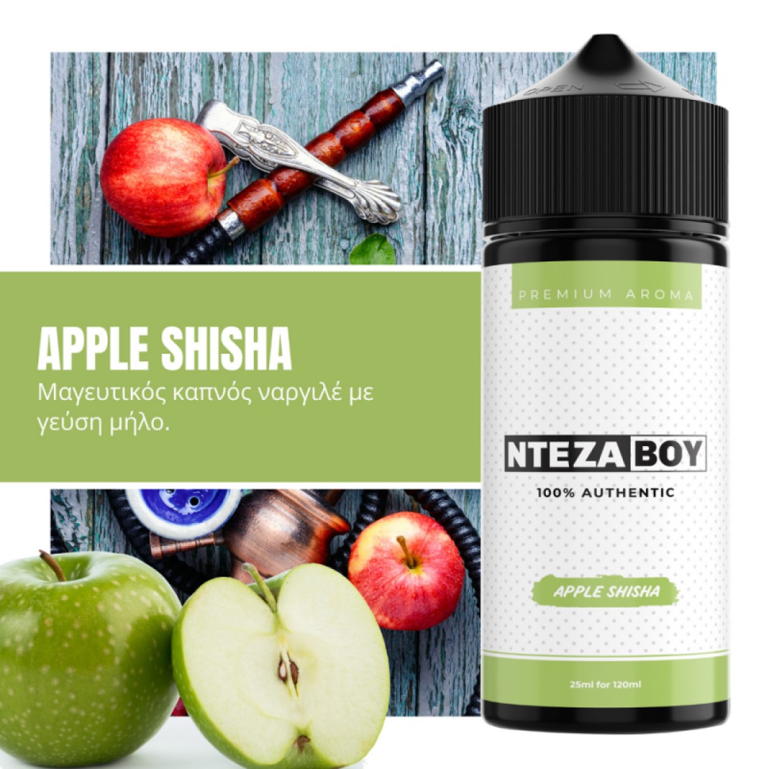 Ετικέτες: 120ml, Apple Shisha, Flavor Shots, NTEZABOY, Ηλεκτρονικό Τσιγάρο