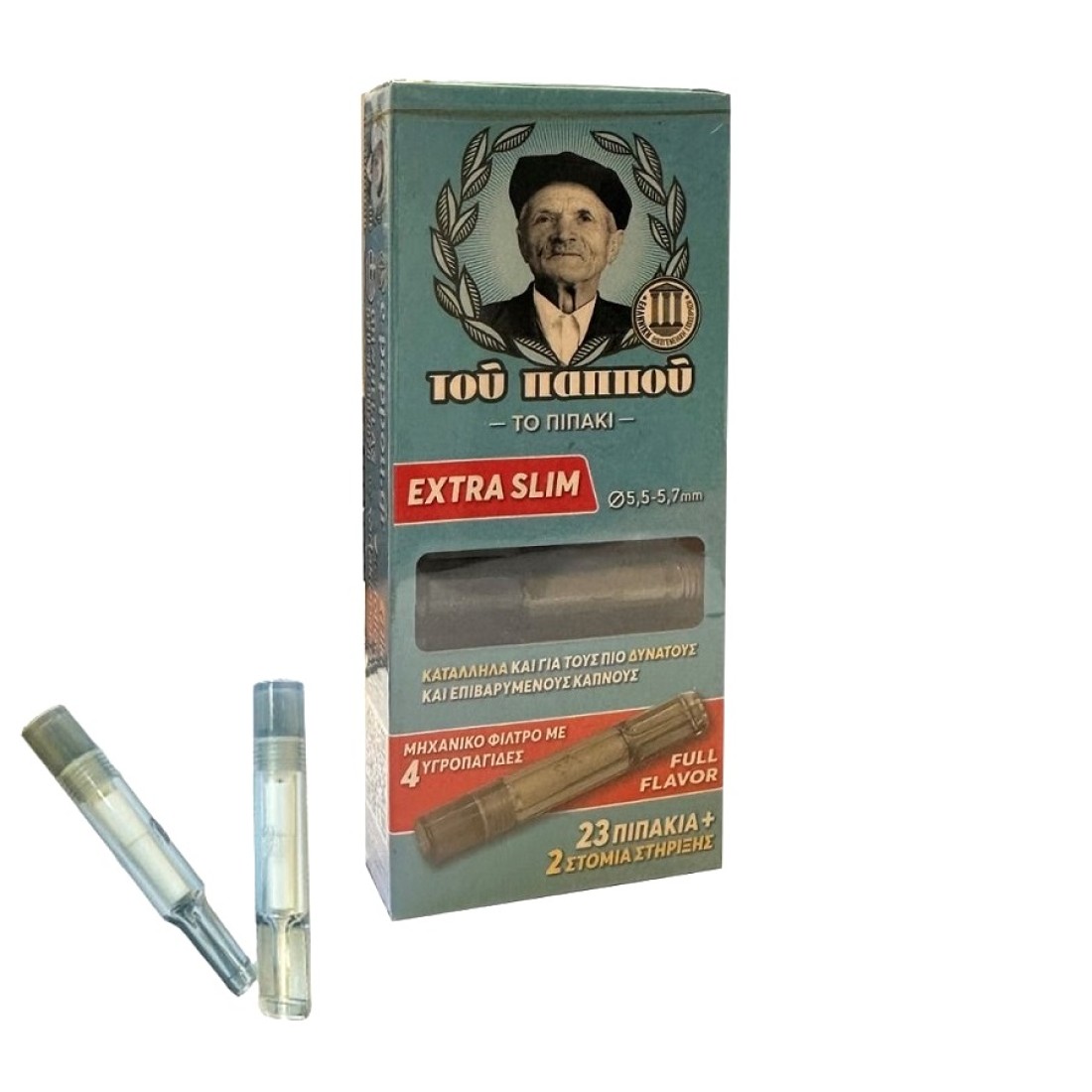 Παππού Πιπάκια Τσιγάρου Extra Slim με διπλό στόμιο στήριξης, πολλαπλών χρήσεων και αποσπώμενο επιστόμιο, ειδικά σχεδιασμένο ώστε να μη γλιστράει από τα χείλη.