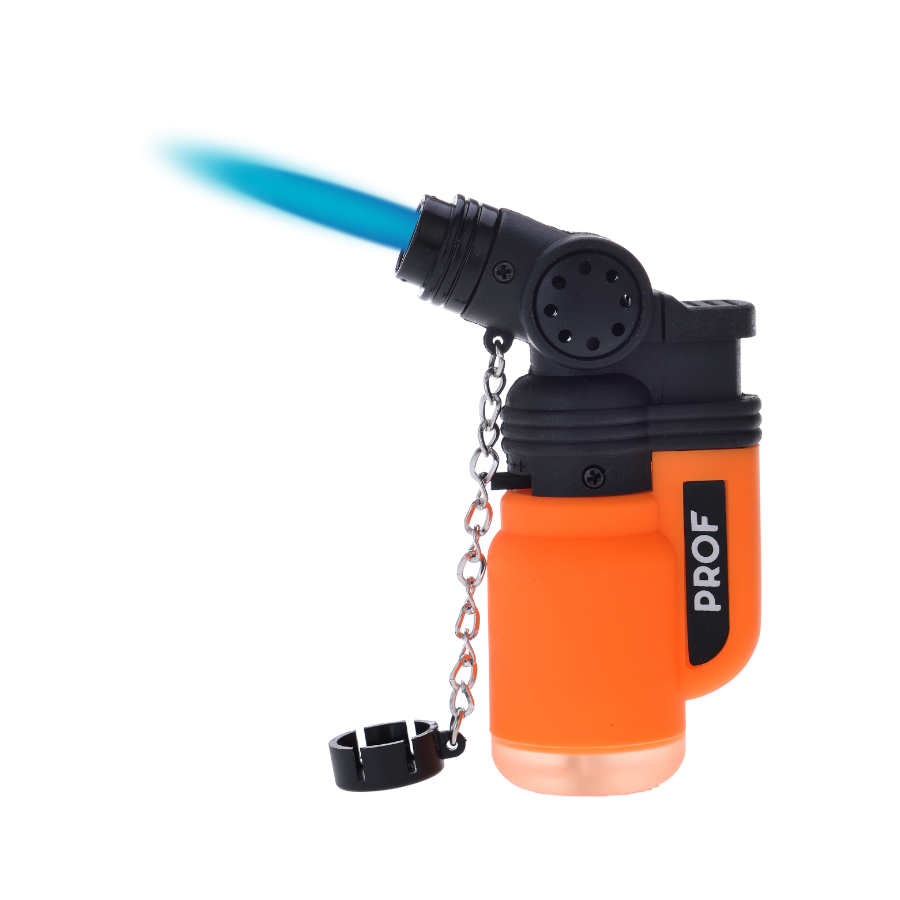 Αναπτήρας αντιανεμικός Prof με μια jet ρυθμιζόμενη φλόγα σε 5 διάφορα χρώματα, με καπάκι ασφαλείας και επαναγεμιζόμενος με αέριο.