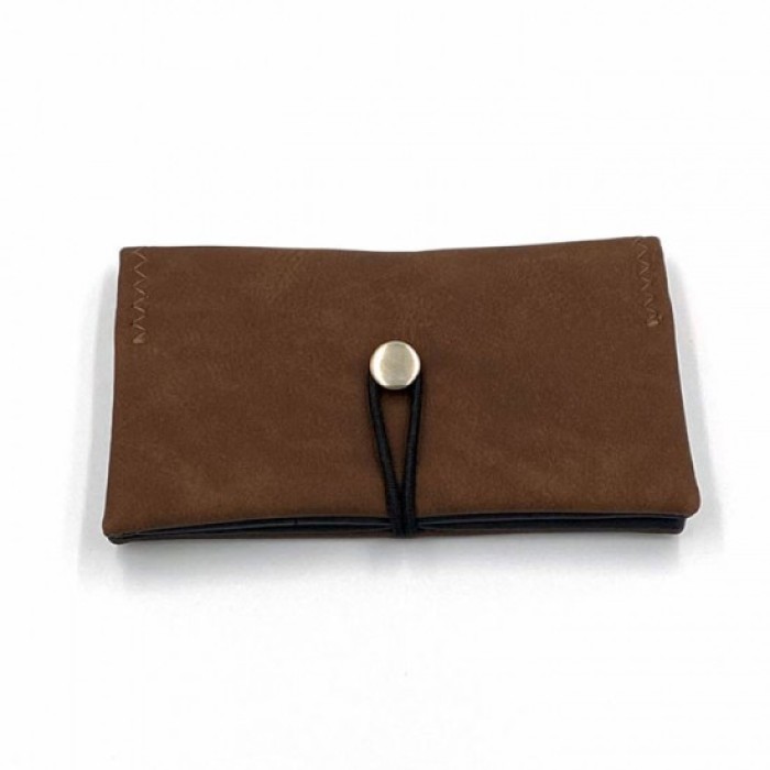 Πρακτική καπνοθήκη σε καφέ σαμουά χρώμα με κατάλληλο μέγεθος, ώστε να χωράει τις συσκευασίες καπνού 30g και 40g μαζί με αναπτήρα, χαρτάκια και φιλτράκια.