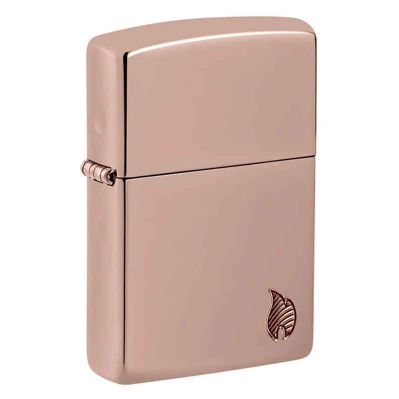 Αναπτήρας Zippo Armor High Polish Rose Gold με την κλασική φλόγα Zippo που εμφανίζεται στην κάτω δεξιά γωνία σε μινιμαλιστικό σχέδιο Deep Carve.