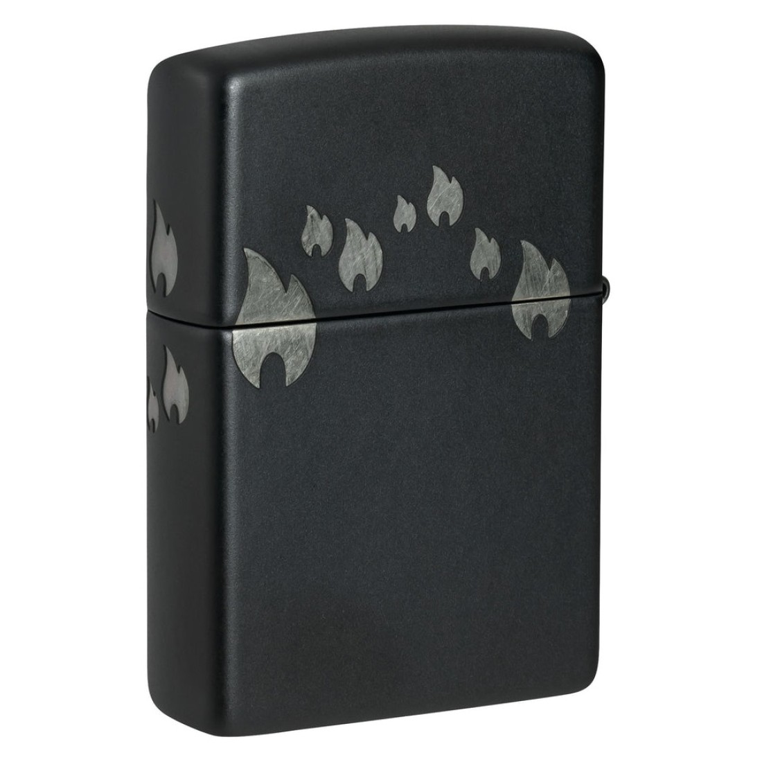 Αναπτήρας Zippo μαύρος ματ με εικονίδια φλόγας Zippo σε όλες τις πλευρές του αναπτήρα, το λογότυπο Zippo στο καπάκι και μεθόδου χάραξης με λέιζερ 360°.